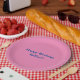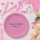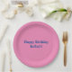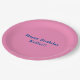These “Custom Pink/Blue Birthday Party Paper Plates” features blue lettering on a pink background, looking good for your party. Order today to make your birthday celebration even more special!