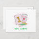 This first grade teacher postcard is perfect for writing a note to your students. Pattern has a pink polka dot notebook, heart coffee, ruler, pen and pencil. This pink polka dot notebook design can be found on other items in my shop, PageCreativeDesigns.