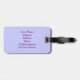Custom pink flamingo ID Identification luggage tag. Use Customise to change monogram initials, or text colour, or delete to leave plain. Features a standing flamingo with a curved neck, on light purple lavender background or change to any colour on both sides. Add your personal ID information or any wording on the back in case your suitcase or bag is lost, or delete if preferred.