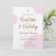 Custom Pink Gold Baby Girl Baptism 1st Birthday Invitation