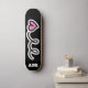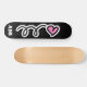 Custom monogram pink heart design skateboard deck. Cool wooden skate board designs for boys and girls. Fun Birthday gift idea for teen kids. Personalise with your own unique name, funny quote or monogram letters. Awesome Birthday gift idea for skateboarding grandaughter, son, grandson, nephew, cousin, daughter, sister, brother, friends, coach etc. Cute girly love icon print with customisable background colour and template text. Also nice as Christmas Holiday present for children. Upload your own skateboarder logo or skater graphic optionally.