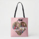 Custom Pink Heart Shape Family Photo Collage Tote Bag