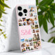 Create your own personalised iPhone case featuring 25 of your favourite pictures in a custom photo collage grid alongside monogram initials in pink colour.