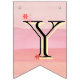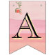 This banner features individual flags with a soft pink watercolor background. Some flags showcase our whimsical hand-drawn goose, while others display bold letters that spell "HAPPY BIRTHDAY." This design is fully customisable, allowing you to add more flags to include your child's name for a truly personalised decoration.