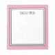 Pink (background colour can be edited) personalised notepad with your name or any text you choose at the top.