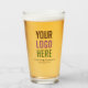 Easily personalise this 16 oz custom pint glass with your own company logo Custom printed pint glasses with your business logo can advertise your brand as promotional items, corporate gifts, business gifts to colleague, business partner, stakeholder or as drinkware for your corporate events.