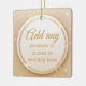 This is a lovely ornament, and great that you personalise the back with details of birthday, weight, etc.. My only tiny disappointment is the "My First" doesn't stand out very well on the background. More than happy with the printing of the photo and the writing on the back.