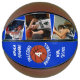 Make your own custom personalised senior basketball for high school and college basketball seniors with blue team colours. Personalise with three of your own pictures of the basketball player and/or team. Then personalise the text with your own basketball player name and jersey number, basketball team name, and your own school letters and graduation year. These are the perfect senior gift for basketball players and teams!