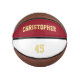 Create your own custom, personalised, faux gold elegant stylish typography / script / text / name on white and dark maroon / red background, mini size, hand stitched basketball. Simply enter the player / team / club / school / college / event / tournament name, and player jersey number, to customise. While you add / design, you'll be able to see a preview of your creation, throughout. Sure to become a treasured keepsake. Makes a great custom, personalised gift for birthday, fathers day, graduation, christmas, holidays, and more, for your loved ones, dad, grandpa, brother, son, nephew, godson, school / college / university / sports club team, player, coach, uncle, husband, kids, boy, girl, friends and family.