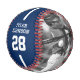 Celebrate team pride with this personalized blue and white team baseball, designed for players, coaches, parents, and dedicated fans. This custom sports keepsake showcases your team’s logo, the player’s name, and their jersey number, all arranged in a bold athletic layout with a clean sporty line running through the design. For an extra meaningful touch, you can also upload two photos of your baseball player to highlight their best moments.