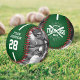 Celebrate team pride with this personalized green and white team baseball, designed for players, coaches, parents, and dedicated fans. This custom sports keepsake showcases your team’s logo, the player’s name, and their jersey number, all arranged in a bold athletic layout with a clean sporty line running through the design. For an extra meaningful touch, you can also upload two photos of your baseball player to highlight their best moments.
