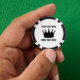 Custom poker chip golf ball markers with crown logo. Personalise with your own funny quote, name or saying. Make your own fun golfing gift for friends and family. Double sided design with custom background colour. Sports themed presents and party favours for men or women. Cool idea for Birthday, Holiday, boss day, reunion, Las Vegas wedding, company day, employees, corporate staff, club, office personnel, coach, players, dad and mum etc. Professional poker tokens with coloured edges. Easy to take with your equipment.