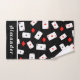Bold poker playing card hand towel featuring a scattered card and red diamond pattern on a black background. Perfect for poker players, casino lovers, or game night enthusiasts. Personalise with your name for a unique accessory to use at home, at tournaments, or as a fun gift. Great for birthdays, Father’s Day, or bachelor parties. Available in multiple sizes, making it a versatile and memorable present for card lovers.