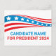 Customise your own political campaign postcards by adding your own name or another politician under these stars and stripes in red, white, and blue. Add a custom name for American president in 2024 or another political office in the USA.