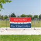 Show your support loud and clear with this customisable political campaign banner, designed with bold red, white, and blue colours and classic stars for a patriotic look. Add your own text to promote your candidate, cause, or event with eye-catching visibility. Ideal for rallies, election events, polling locations, or yard displays, this durable banner is made for both indoor and outdoor use. Let your message stand out during any election season with this fully personalised and professional campaign banner.