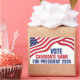 Customisable political campaign candidate sticker with the American flag on top of your text in red, white, and blue. Add your choice for president or other political office in the 2024 election. Bold custom text.