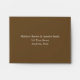 Use this custom envelope in place of the generic white envelopes that come standard with all of the cards and invitations in the Floral Vines Wedding Collection. This brown envelope features a green interior and a pre-printed return address on the front. You can easily customise the address on the product order page. The default size is 5 3/4" W x 4 3/8 H (A2) and fits the small greeting cards and invitations. You can order a different size by selecting "customise it" and "Choose your paper type and colour". A7 fits 5x7 invitations and cards. A6 is for the small invitation, but will also fit the small greeting card (note card). A2 is for the small greeting card (note card), but will also fit the small invitation. We also offer this envelope design without the printed address if you would rather write your own or use address labels.