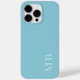 Contemporary light teal seafoam ocean blue coloured monogram cellphone case. With room to customise with a name monogram or initials of your choice. Beautiful, modern and cool cover for the trend-savvy and art-loving hip trendsetter, artsy motif lover who wants to protect their phone from dust and dirt, wear and tear. This design is available Apple iPhone 6, 7 and 8 Plus, 10 or X, XR, XS , 11, 12, 13 Mini, 14, 15 Plus and Pro Max cellphone cases. Show off your style, look fashionable trendy and feel stylish with a unique design on a mobile device accessory of your choice.