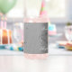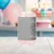 Custom print photo glass for casual beach wedding. Elegant photo of hearts drawn in the beach sand. Great for coastal wedding party near the sea or ocean water. Black and white image with script typography. Personalise with names of bride and groom. Part of matching collection set with traditional stationery and beautiful decor. Choose from can or wine glass.