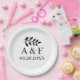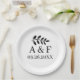 Custom Printed Plates - Contemporary Leaf Monogram party plates - Dessert, Appetizer, 7 inch, Paper or Plastic, Wedding, Anniversary, Shower