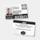 Customisable security badge with a geometric background pattern. Personalise with your ID photo, employee number, job title, company name, logo, issue date, expiration date, and a QR code or barcode. Ideal for various workplaces and professions such as private security guard, close protection officer, store security, personal bodyguard, official doorman, retail worker, medical staff pass, and more. Printed colours: blue, gold, black and white. Shop the collection for more badges and tags for sale online, designed for the security service industry.