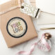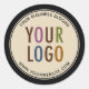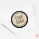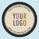 Personalise our round custom business stickers with your company logo, business slogan, website address, or other custom text. This design features a black border and curved text. You can customise the background colour. These are professional scratch resistant stickers printed on acid-free paper. Available in a glossy or matte finish in size 3 inch and 1.5 inch. Low minimum order quantity and no setup fee.