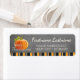 Cute 'Happy Thanksgiving' greeting text written in typography on an orange Pumpkin. And bright orange, lime green, white and black horizontal stripes pattern design on a grey chalkboard background. With room to personalise with your family and address, and option to customise with (limited) text of your choice.