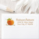 Cute 'Happy Thanksgiving' greeting text written in pretty typography on an orange Pumpkin. With room to personalise with your family and address.
