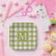 Custom Pumpkin Leaves Green Gingham Pattern Paper Plate