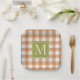 Farmhouse country style autumn pumpkin orange and off-white ivory gingham plaid pattern, with the option to customise or personalise with a family name monogram of your choice. Fun pretty fall coloured paper napkins for on your in fall colours decked table and get in the mood for fall season, the Thanksgiving holiday and Halloween.