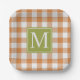 Custom Pumpkin Orange Green Picnic Gingham Pattern Paper Plate