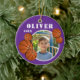 Custom Purple Basketball Ball Sports Photo Ceramic Ornament. Ornament with basketball balls, a custom name and a photo in a round frame.