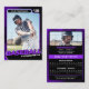 Create a personalised baseball trading card to celebrate your favourite player. This customisable template lets you add your player's name, team, stats, and photo. The Purple and black design is stylish and professional, and perfect for displaying a player's achievements.
