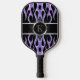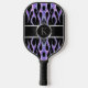 This custom pickleball paddle is black with purple flames and silver metallic accents. Personalised with your initial. Great gift!