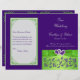 This romantic 8.5"x11" purple, lime green, grey, and white floral wedding program has a PRINTED ON ribbon and bow with a pair of PRINTED diamond jewel and FAUX glitter and printed diamond joined hearts brooch on it, along with ornate scrolled borders on the back and inside pages. There is also a verse that says "This day, I marry my best friend. The one I live for, laugh with, dream with, love" on it. It is designed to be folded down the centre. Be sure to make sure that the text is centred where you want it, as everything will print as you see it on your monitor. All the text is customisable.