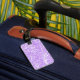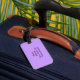 Luggage tags help you identify your luggage, backpacks, gym bags, golf bags and more from other bags on the luggage carousel, train or bus, and prevent loss. Easily and quickly pick your bag out of the herd with this luggage tag that has a unique design on the front and the back for your name, address, city, state and zip code information. Change the text in the fields provided. You can change font style, size, and colour.
