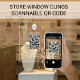 Modern minimalist style transparent logo QR code window clings provides a simple yet professional clean polished look. Ideal for displaying business hours, contact information, or promotional messages. Its designs is perfect for any businesses; be it retail stores, restaurants, and offices looking to enhance their branding. Customise QR code by adding URL link. With a quick scan, customer will engage directly with your company.