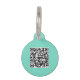 Custom mint and black dog ID tag with a QR code. Minimal pet accessories with a simple and modern style. Personalised with a name on the front and your own code including your phone number or any extra information on the back.