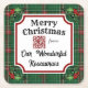 Custom QR Code Restaurant Christmas Green Plaid Square Paper Coaster