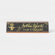 Custom, personalised, professional, modern, classy, stylish, elegant, business office rose gold classic black and faux gold script / typography, metal desk sign name plate.