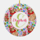 Festive Quokka family custom ceramic ornament with retro-inspired watercolor smiling kangaroos on a white background. These Australian Christmas kangaroos are perfect for Christmas gifts, or tree ornaments, or gift-giving, illustrated by Jo Story of Sketchbook Designs. This happy and fun Christmas ornament would make the perfect keepsake this Christmas.