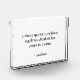 Add your favourite short quote, saying or verse to this tabletop acrylic block. A simple and beautiful inspiration accessory for your office or home. Add your friend's, colleague's or loved one's message to make a personal and memorable gift that will be cherished for years to come.