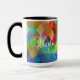 - Intense colourful design with rainbow smoke suspended in front of the harlequin pattern