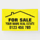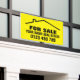 Custom real estate banner signs for realtors and private home owners. Design your own vinyl banner flag or sign for printing. Make your own custom pvc indoor or outdoor banners. Add your own printed text and background colour. Sign template with personalizable modern typography. Great for housing / property business, shop / store opening, special holiday offers, advertising, yard or garage sales, venue, party, events, office, promotional occasions etc. Personalised signage with big letters / large lettering. Available in different sizes and shapes for wall, balcony, garden fence, office building, roof etc. With or without holes to hang it up. Change the quantity for the cheapest price. Digital printing, fast delivery. Yellow and black or custom colours. Professional roof with chimney logo design or use your own company icon.