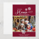 Show your clients you care and stay top of mind with these custom photo. from our home to yours, holiday cards. Designed with a red burgundy wine background and silver grey snowfakes. Easy to upload your photo and add your personalisation information.