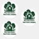 This forest real estate company label is perfectly customised for a realtor who specialised in houses near the wilderness or woodlands. The green silhouette of trees behind a log cabin home and personalised with your agent and realty business name for marketing labels in the backwoods.