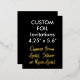 Custom Foil Invitations - REAL GOLD FOIL on BLACK BACKGROUND - 4.25" x 5.6" PORTRAIT [qualified USPS postcard size].