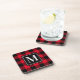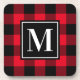 Custom Red and Black Buffalo Plaid Monogram Coaster