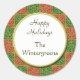 An elegant custom Christmas or holiday gift sticker with script and hand letters and red and green holiday art with an elegant vintage fleur de lis pattern restored from antique tiles.