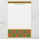 Custom red and green holiday stationery with green script letters and a vintage fleur de lis pattern restored from antique tiles on a golden background top and bottom. This stationery has light golden lines. Customise It to remove lines, change fonts, colours, and more.
